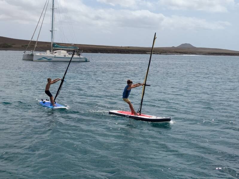 Mercredi matin, départ du mouillage de Palmeira (Sal) pour celui de Sal Rei (Boa Vista). Quelques heures de navigation au portant puis grand largue et nous arrivons dans un mouillage paradisiaque : eau turquoise et sable blanc. Avec Nomade et Kékidi, nous ne nous quittons plus et mouillons tous les trois à côté.