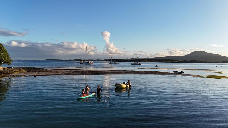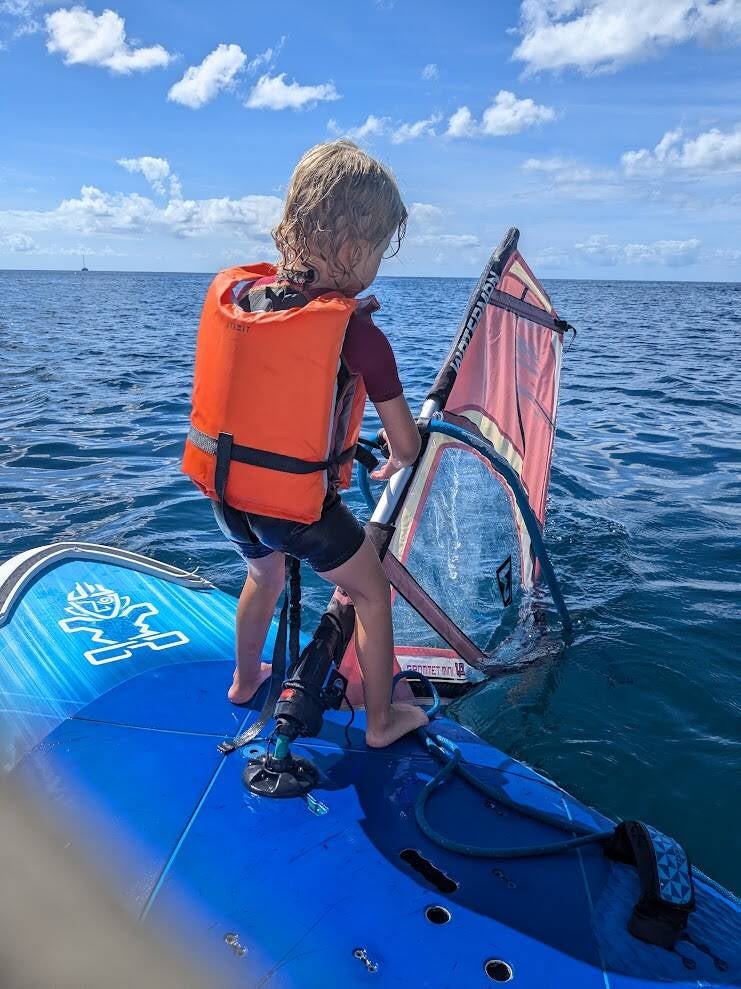 Toujours à quatre bateaux, avec Cistude, Kassoumay et Nomade nous rejoignons la côte Est de la Martinique (dite “côte au vent” car elle est exposée aux alizées), pour une dizaine de jours. La vie au mouillage reprend son cours. Le matin, les enfants travaillent. Dès la fin de matinée, ils se retrouvent dans l’eau ou sur les bateaux. Ils ont ici un espace de liberté qu’ils n’ont jamais connu ! Nous sommes quasiment toujours seuls au mouillage. Au départ nous avions rejoint la côte au vent pour pouvoir profiter du vent et faire de la planche à voile. Le vent étant vraiment très faible, les gars s’adonnent à la chasse sous-marine et nous, les filles nous retrouvons autour d’un thé. Le soir, quand la chasse à été bonne, on se retrouve à la plage pour les grillades. Avec Alex, on réalise que nous avons passé la moitié du voyage et comme ça a passé vite… Nous sommes bien décidés à continuer de profiter des quelques mois et essayons de ne pas trop penser au retour.