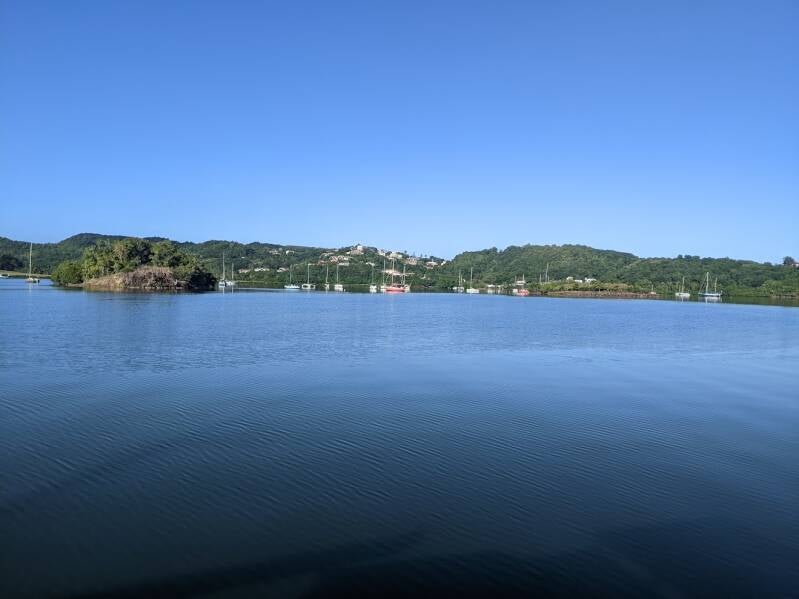 Un coup de vent est annoncé sur la Martinique. Nous avions prévu d'aller aux Trois Ilets, ça tombe bien c’est un trou à cyclone. La mer y est d’huile et le vent largement supportable. Par contre, pour la baignade, ce n’est vraiment pas agréable… Le fond est vaseux et l’eau est saumâtre : pas du tout engageant. Il en faut plus pour arrêter les enfants! Ce sera notre point de chute pour circuler en voiture.