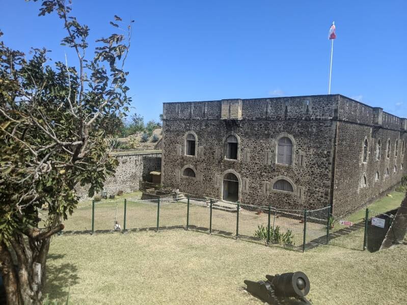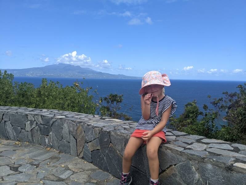 A peine mis le pied à terre et on ressent un véritable choc culturel. Le bourg de Terre de Haut s'apparente à un petit bourg touristique tels que nous les connaissons en métropole. L'île se remplit avec l'arrivée des navettes de passagers arrivant de Guadeloupe le matin et se vide à leur départ. Nous sommes en pleine période touristique - vacances scolaires et carnaval - toutefois, malgré le monde, nous trouvons l'archipel bien charmant. Nous retrouvons l'équipage de Zéphyr. C'est leur cinquième passage aux Saintes, ils nous font découvrir les lieux sympas... On retrouve aussi des boulangeries et du beurre salé! Les enfants s'amusent autant à terre sur la plage ou l'aire de jeu que dans l'eau (l'optimist est de nouveau de sortie). Nous profitons de l'étape pour visiter le fort Napoléon qui domine la baie et en apprendre un peu plus sur l'archipel.