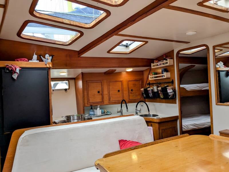 Lorsque nous avons acheté le bateau, il était dans une configuration "hauturière" très ancienne. La structure est très saine mais il faut, soit ajouter des options pour le confort à bord, soit rafraichir les équipements vieillissants.